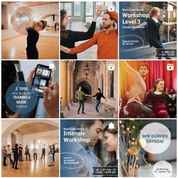 Es gibt coole Tanzvideos aus der Community zu entdecken, lustige Hintergrundstories aus dem Tanzschulalltag sowie Insidertipps für Anfänger:innen und Profis - alles was das West Coast Swing-Herz begehrt also!